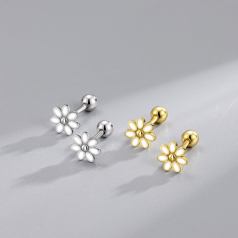 20G Cartilage Mini Stud Earrings Cute Daisy Flower Enamel Earring 925 Sterling Silver Floral Tiny Ball Screw Back Tragus Barbell Sleeper Studs Lovely Jewelry Gifts for Women Teen Girls (Gold)