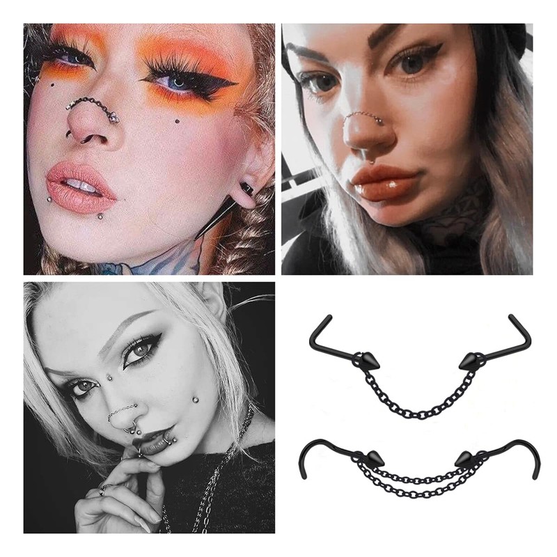 - Using: Fashion Nostril Piercing Chain and Nose Ring Set is Made for Paired Nostril, Double Nose Piercing, High Nostril Piercing, Bridge Piercing or Earlobe Studs. Stylish Nose Ring for Women are Cool and Shiny for Daily, Dating, Party and So On.