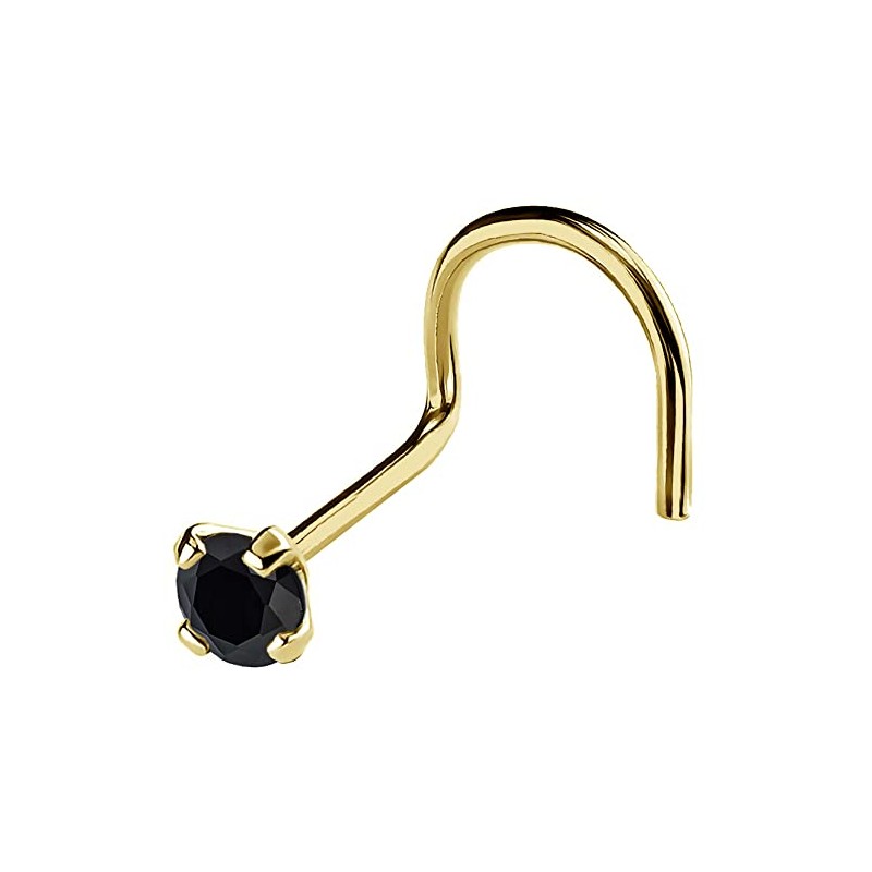 - This listing is for 1 piece of Solid 14Kt Yellow Gold or 14Kt White Gold 20G Nose Screw Stud Ring with your choice of real Black Diamond Gemstone size 1mm, 2.5mm, 2MM, or 2.5mm