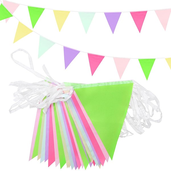 - 🎉【Package Content】: You will receive 2 Bunting Banners, about 20m in length, consisting of 52 pennants in multiple colors, each flag is about 16*22cm, suitable for In many decorative occasions, it will add color to your party and enhance the atmosphere of the party.