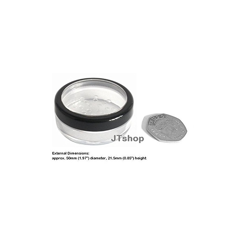 20mL THICK WALL Empty SMALL PLASTIC SIFTER JAR with Black Rimmed Lid for Makeup/Balm/Glitter (2 Sifter Jars)