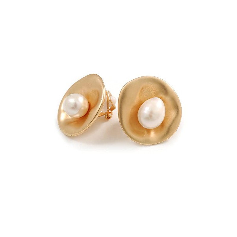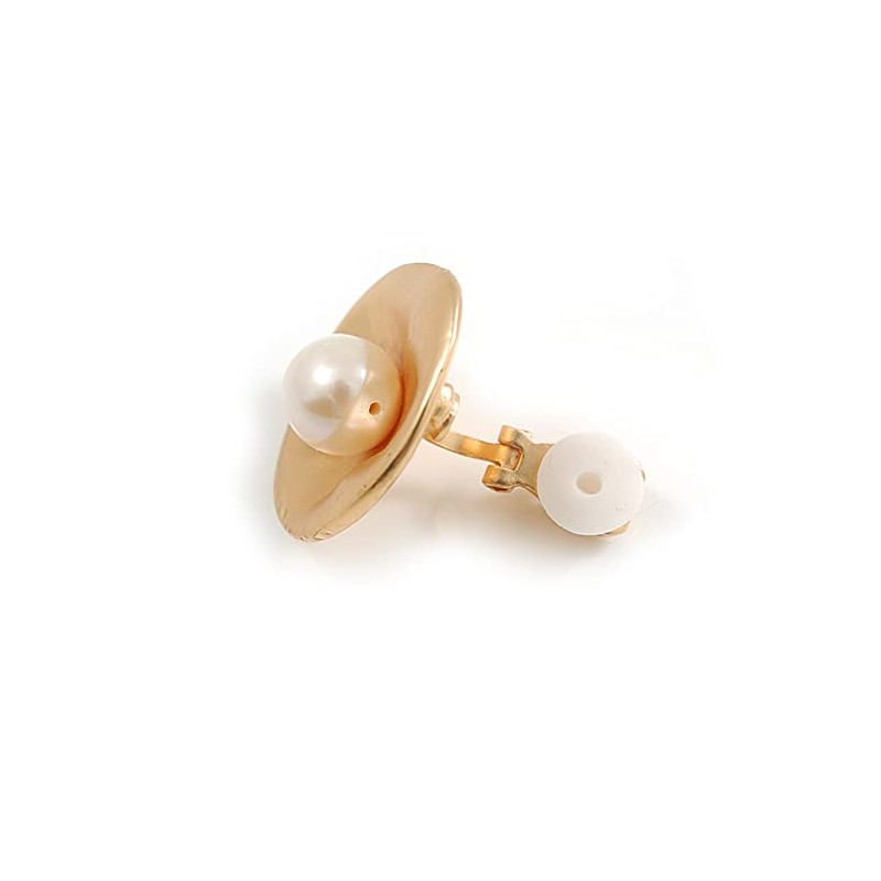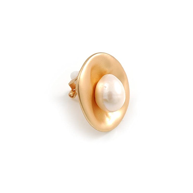 20mm Matt Gold Tone 'Shell' with Freshwater Pearl Bead Clip On Earrings