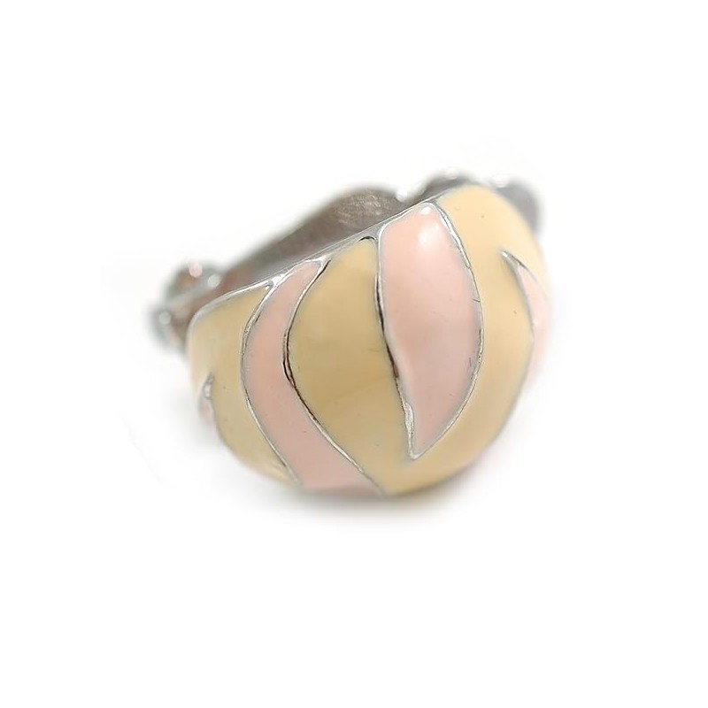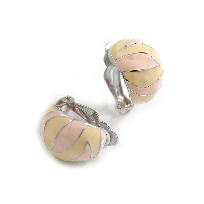 20mm Tall/Pink/Cream Enamel C-Shape Clip On Earrings in Silver Tone