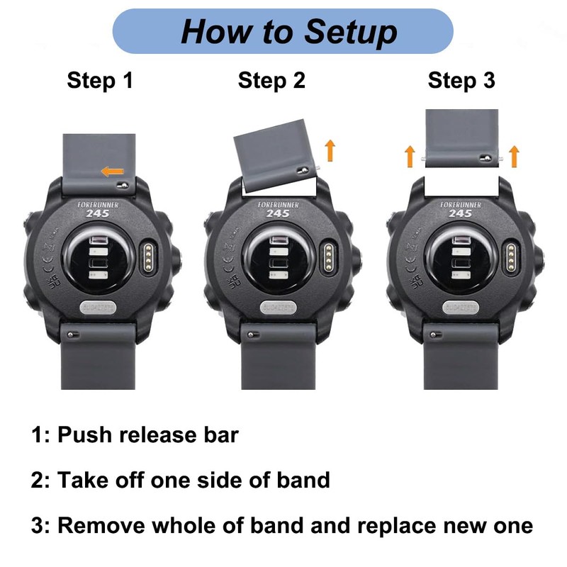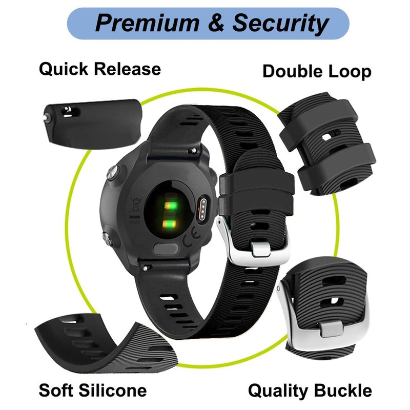 - 【Multiple Colors】Providing multiple colors to meet your different fashion outfit, the forerunner 245 band fearless of sweat accumulation and stimulation, makes your sport watch look more fashionable.