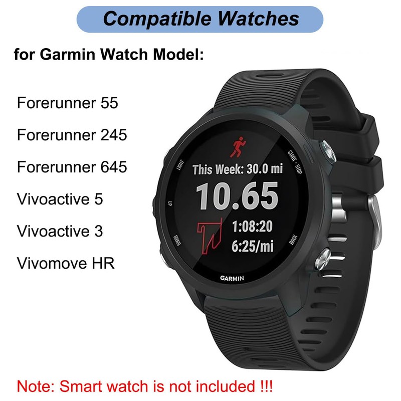 - 【Packing List】1 x watch band for Forerunner 55/245/645, Vivoactive 5/3, Vivomove HR (Note: the watch is not included!!!). If any problem, please contact us online. Thank you for your purchase!