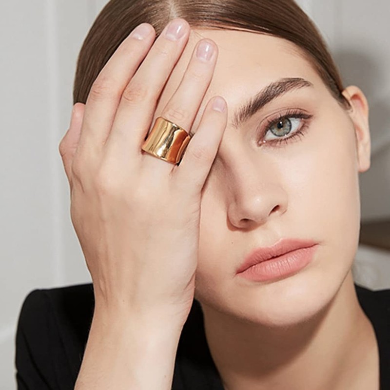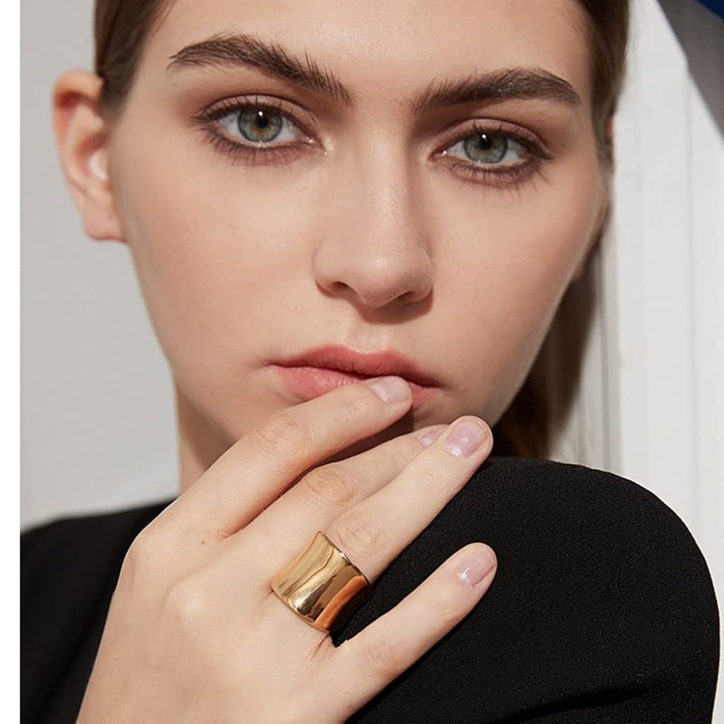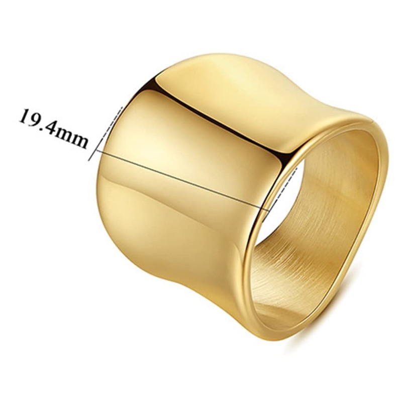 20mm Width Chunky Wide Stainless Steel Wedding Band Statement Promise Anniversary Ring (Gold, 9)