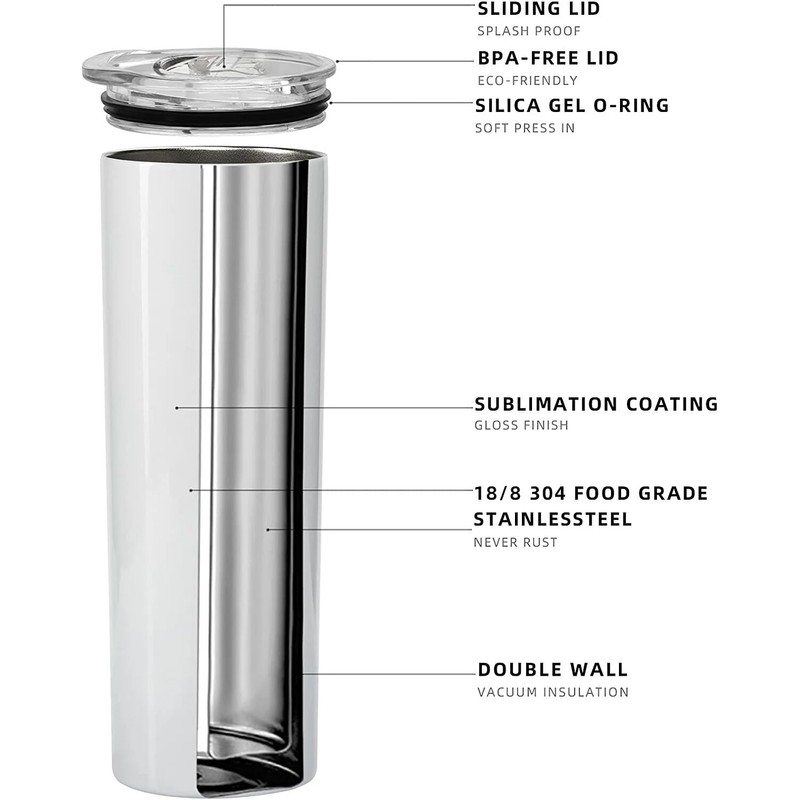 Experience the blend of personalization and sophistication – order your 20oz Personalized Sublimated Skinny Tumbler today and turn every sip into an expression of your unique taste.