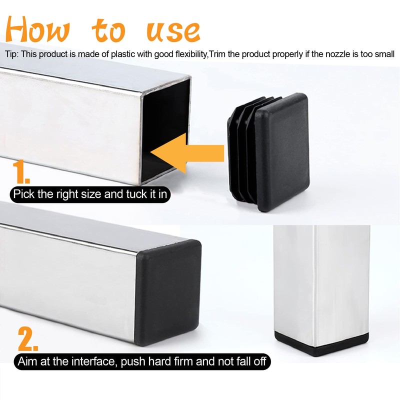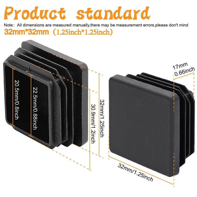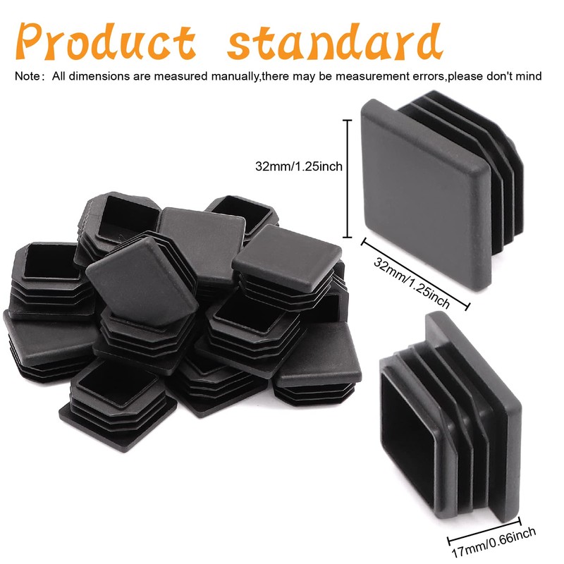 - End cap for 1-1/4"(32mm) outside diameter (OD) square tubing.Suitable for square pipes with a wall thickness of 0.5mm-2mm.