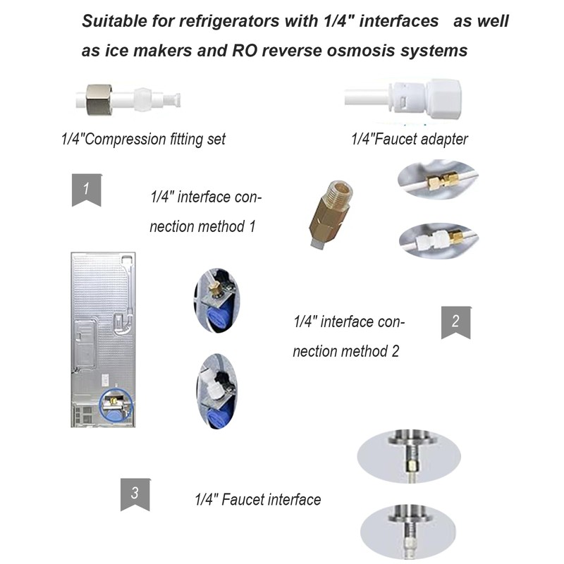 • ​Versatile Compatibility. Compatible with reverse osmosis systems, water filters, and standard refrigerator water lines, this kit is a versatile solution for any home or professional setup. Whether you’re installing a new ice maker or upgrading your fridge, this kit has you covered.