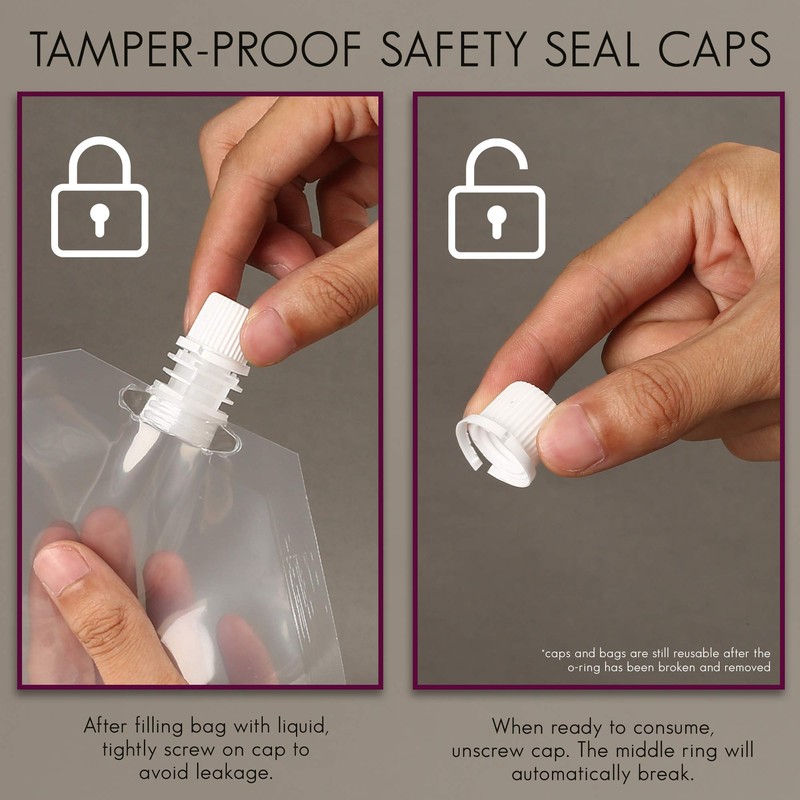 - CONVENIENT: Flasks and caps are individually packaged. Just screw cap on tightly after filling pouch with the funnel. Easy to discretely store on your person, purse and more.