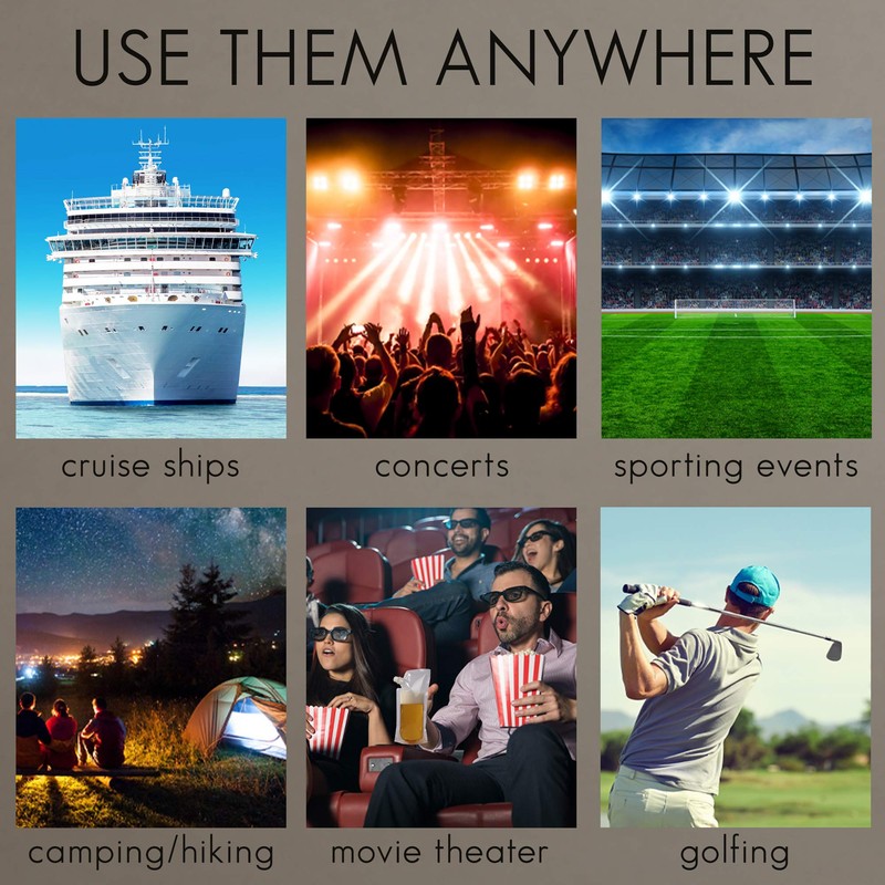 - SAVE MONEY ON DRINKS: Sneak in your favorite drinks! Don’t pay outrageous price for drinks at concerts, games, parks, cruises and more; These flask bags are great for theatres, hiking, BBQs, camping, skiing, tailgating, poolside, Glass-free beaches.
