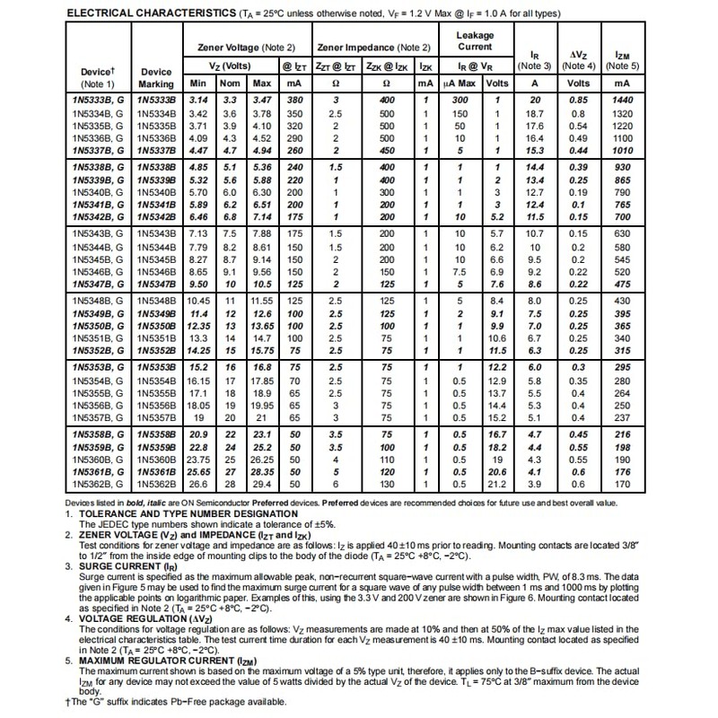 (20PCS)1N5358BRLG Axial DIODE ZENER 22V 5W AXIAL