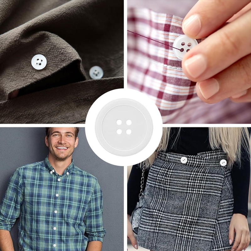 - 【Versatile Applications】: These white buttons are ideal for various uses, including sewing on coats, sweaters, shirts, pants, blazers, jackets, and vests. Perfect for DIY crafts, knitting, crocheting, card making, and scrapbooking, they can be attached using thread, glue, tape, ribbon, or other creative methods.