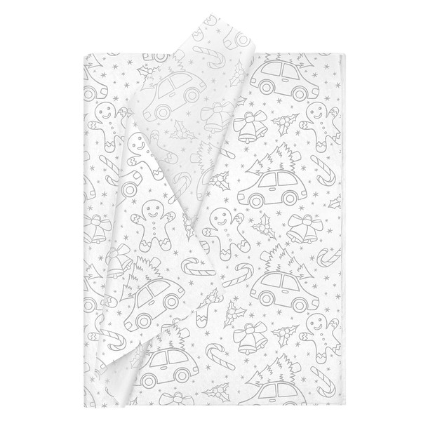 20pcs 50 * 35cm Sliver Tissue Paper with Car and Gingerbread Man,50 * 35cm Wrapping Paper Bulk for Christmas Xmas DIY Gift Decorations