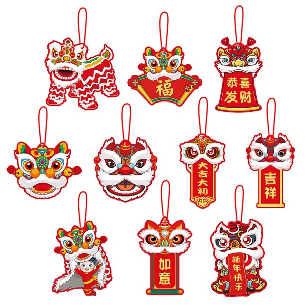 - 🎈Packaging includes -10PCS lion pendant +10PCS lrope. The lion dance is accompanied by a strong New Year flavor, indicating happiness, wealth, health, good luck and good wishes. Please refer to Figure 2 for specific dimensions, thanks!