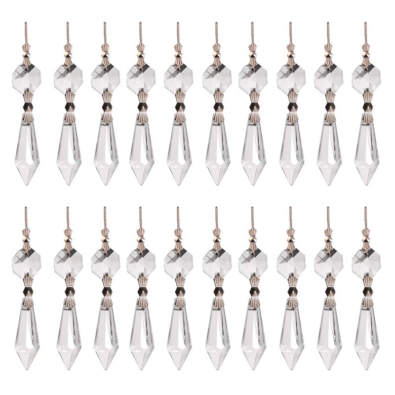 20pcs Clear Crystal Chandelier Icicle Prisms Lamp Candelabra Replacement Parts with Octagon Beads,DIY Crystal Curtain Pendants 38mm