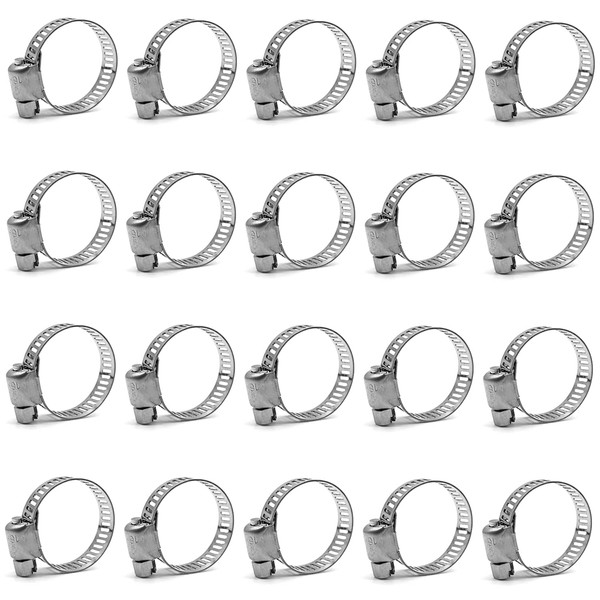 20Pcs-Hose Clamp,304 Stainless Steel Hose Clamps, Adjustable 16-25mm (5/8-1 inch) Range Hose Clips,Worm Gear Hose Clamp Fuel Line Clamp for Plumbing/Automotive/Mechanical Application