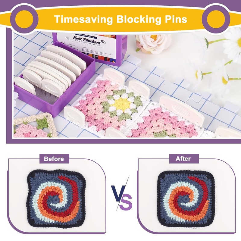 - Easy Blocking: The handle position of these crochet blocking pins is ergonomically designed, and anti-slip textures are also used on both sides of the handle. Using our crochet knitting pins can easily simplify your blocking process and speed up your projects.