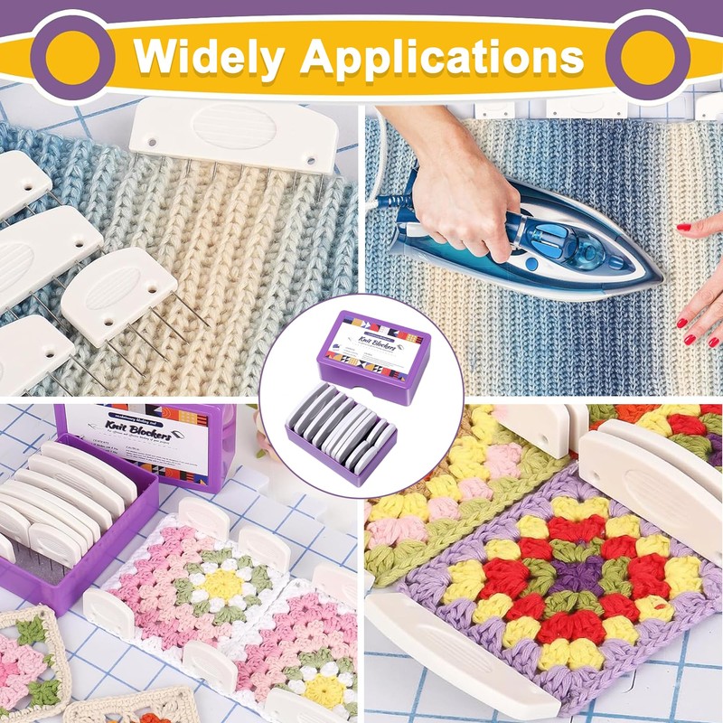 - Two knit blockers comb size options: This Knitting Blocking set contains 8pcs 4 and 12pcs 8 stitch combs. you can easily choose them according to your needs to fix your handiwork on the mat faster so that your handiwork will stay taut, shaped, and firmly in place. The Knit Blocking Pins Kit is the best way to achieve the perfect performance of your handiwork.
