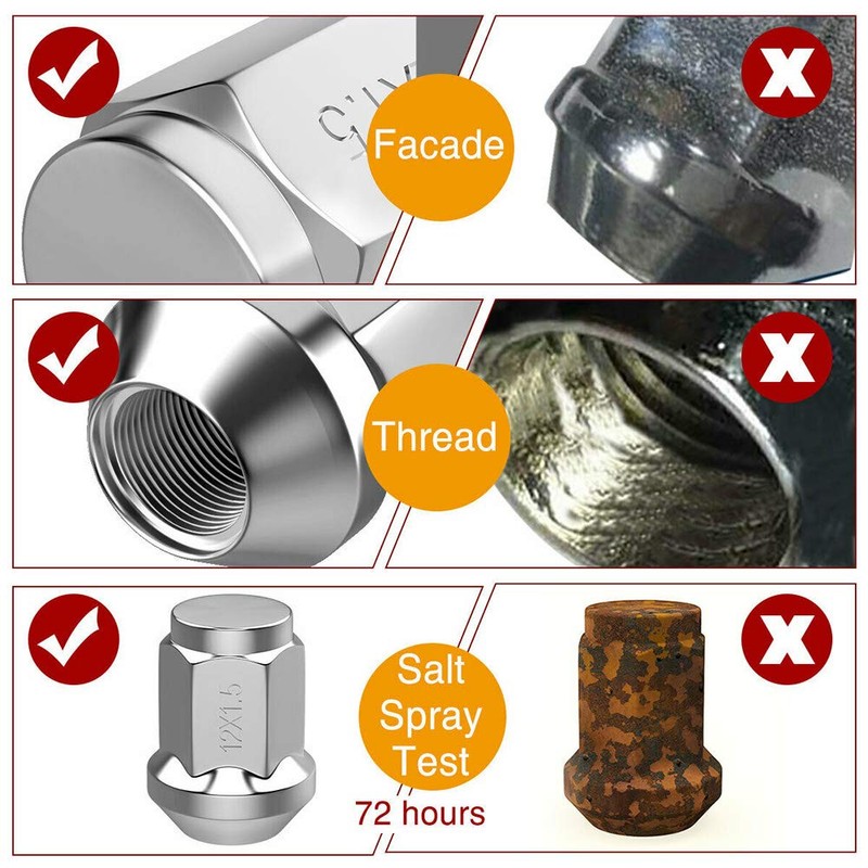 - 🚗Fit for most vehicle with 12x1.5 wheel studs and wheel that utilize a standard size 60 degree conical s-eat lug nut.