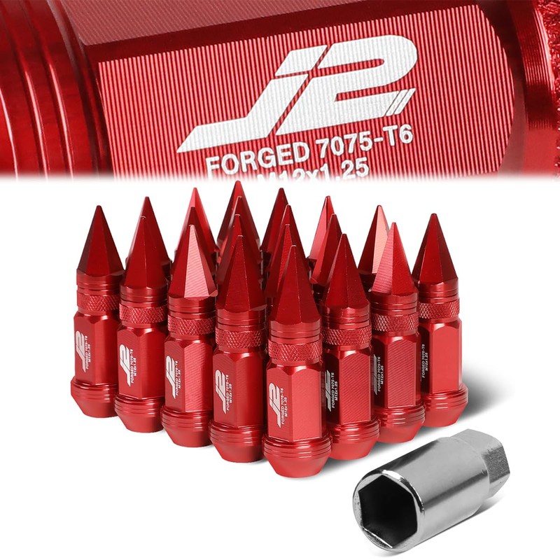 20Pcs M12 x 1.25 7075-T6 Aluminum 80mm Spiked Cap Lug Nut with Socket Adapter, Red