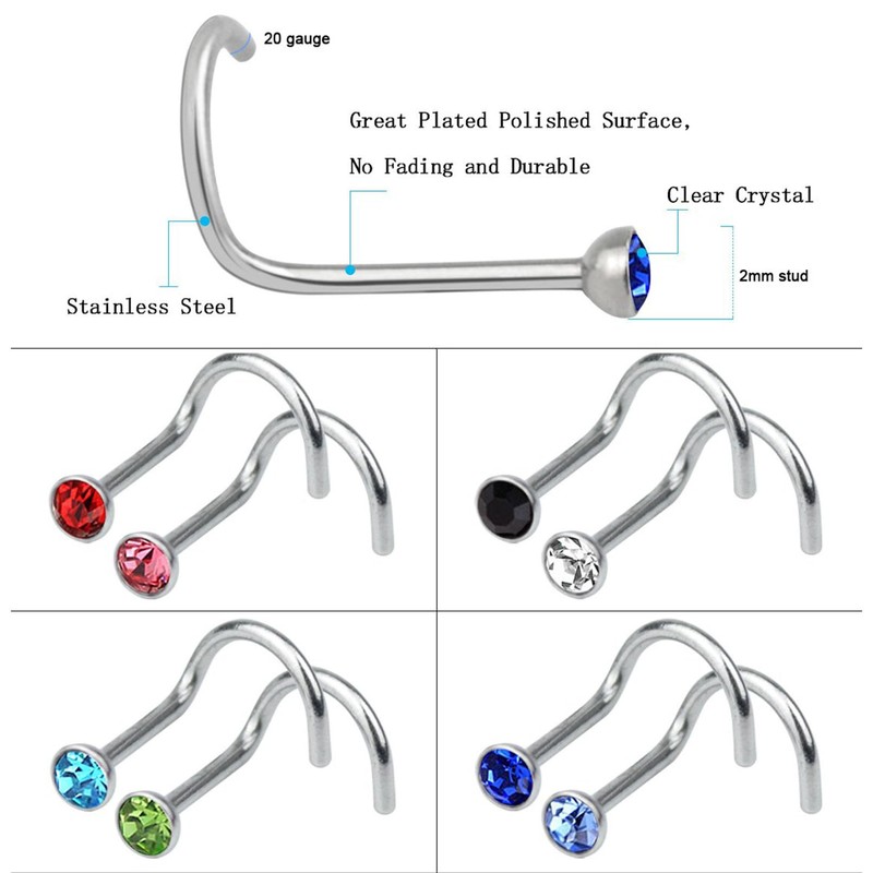 - Material: Stainless steel (hypoallergenic and nickel-free nose rings and ear studs), with a highly polished and smooth surface. 20g nose rings and ear studs are sturdy and durable, not prone to deformation, and comfortable to wear