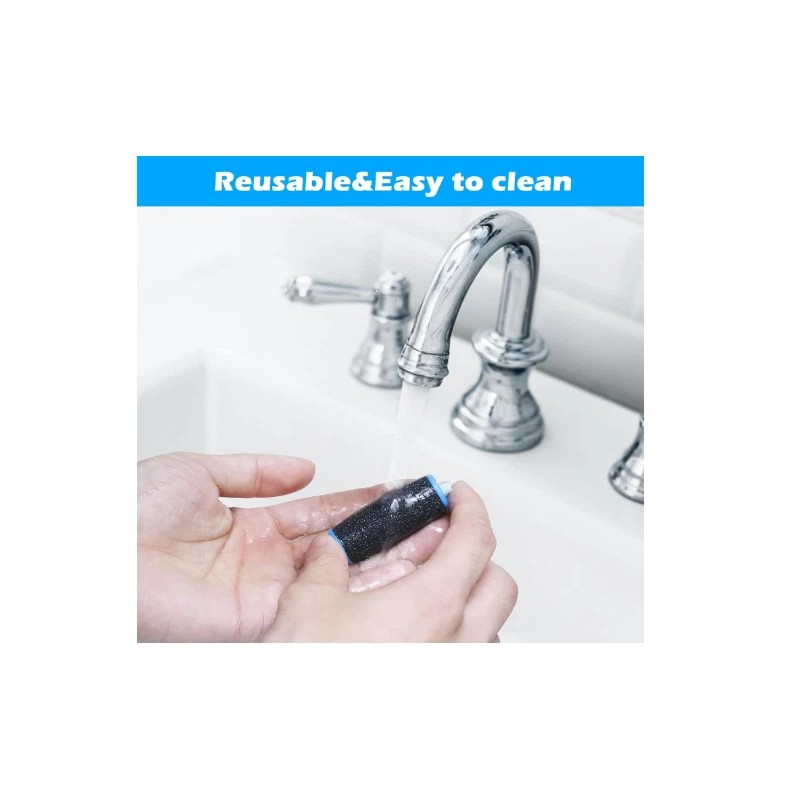 【High quality and easy to clean】-- Our replacement rollers have twice the hard micro-diamond crystal abrasive grains, which are resistant to wear and remove dead skin more efficiently. The washable material ensures quick and easy washing.
