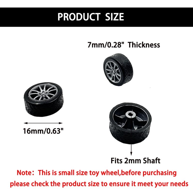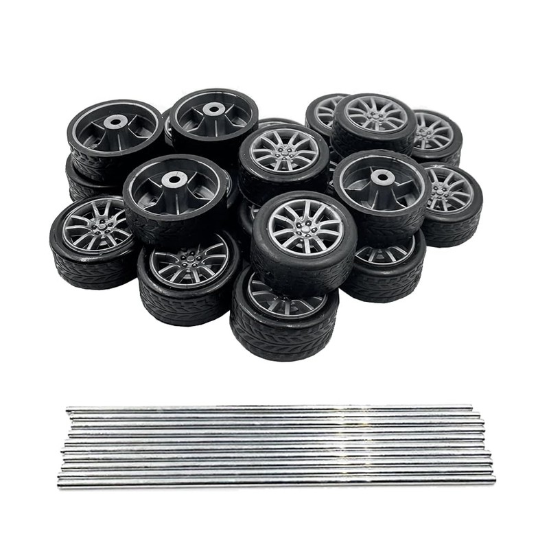 - Applicaiton:20PCS 16mm toy car wheels mini car rubber tire wheel with 10pcs metal shaft round axles for rc car,truck,robot,diy model toy wheel replacement,enjoy the fun of diy projects