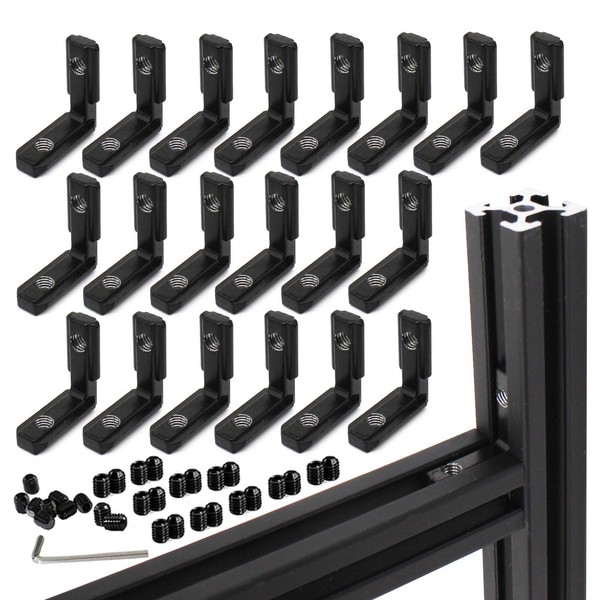 20pcs T-Slot L Shape Interior Corner Connector Joint Brackets + 40pcs Screws and + 1 Wrench Tool for 2020 Series Aluminum Extrusion Profile Slots 6mm (Black)