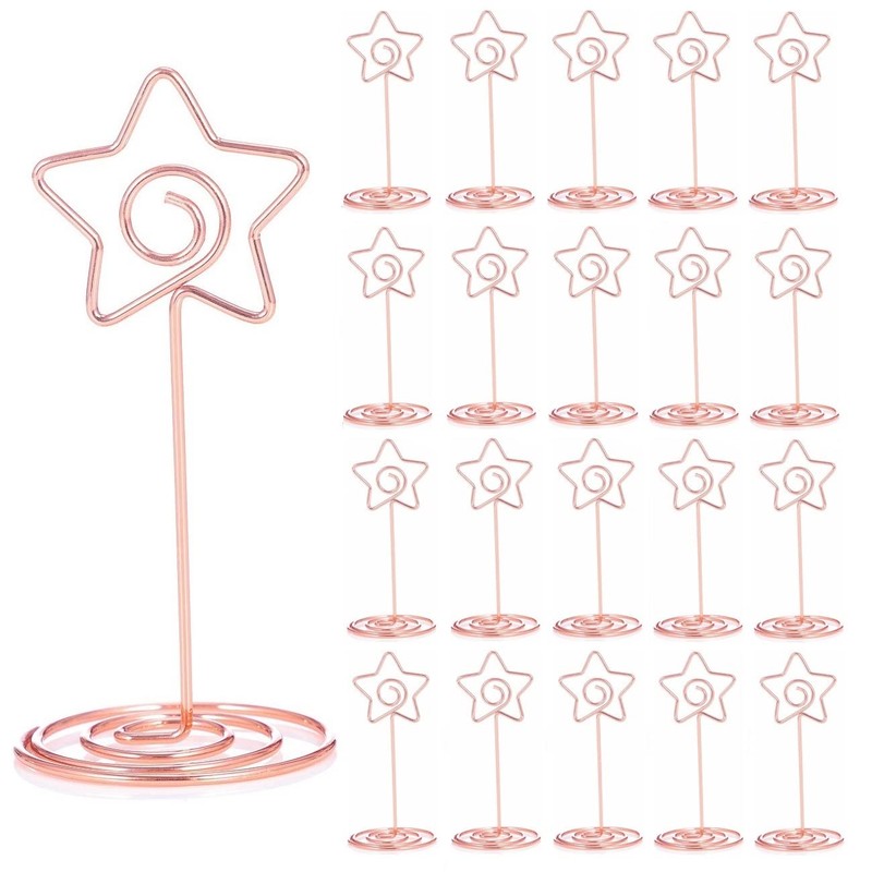 20PCS Table Number Holders,3.35 inch Place Card Holders,Table Number Stands,Table Card Holder, Photo Picture Holders for Centerpieces, Wedding, Party, Birthday (Star Shaped-Rose Gold)