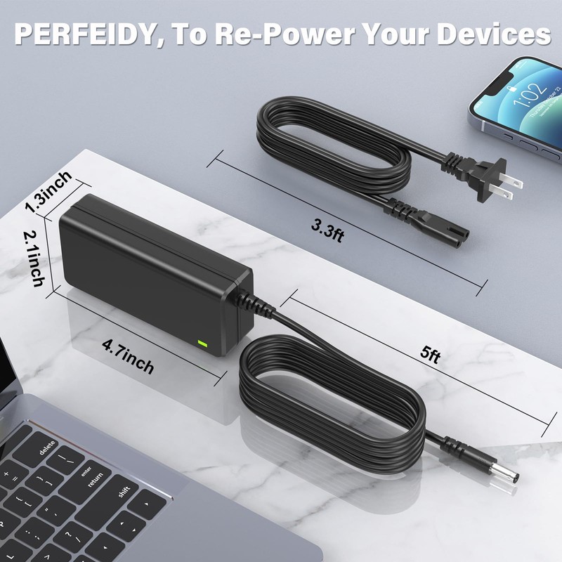 - UL LISTED Charger, Energy Efficiency VI, Power Cord Tested & Approved and Certified by UL, Input: AC 100V-140Volt, Output: 20V 1.8A, US standard wall plug class 1 AC adapter, 6.0ft/1.8M extra long enough power cord, Center Tip Negative (-)