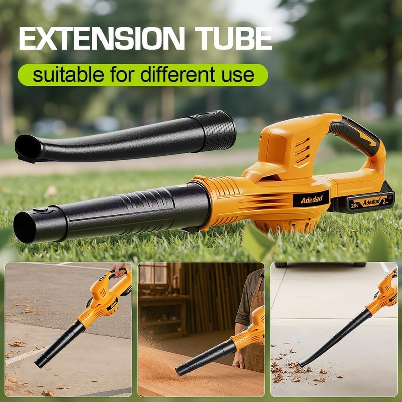 - ➽ Dual-tube and Two-speed Design: Equipped with adjustable dual tubes and two speed settings, this cordless leaf blower meets a variety of cleaning needs. Whether you're clearing narrow corners or wide lawns, it can handle the job with ease. Compared to blowers with single tubes and fixed speeds, this device is more versatile and multifunctional, truly making it an all-in-one solution.