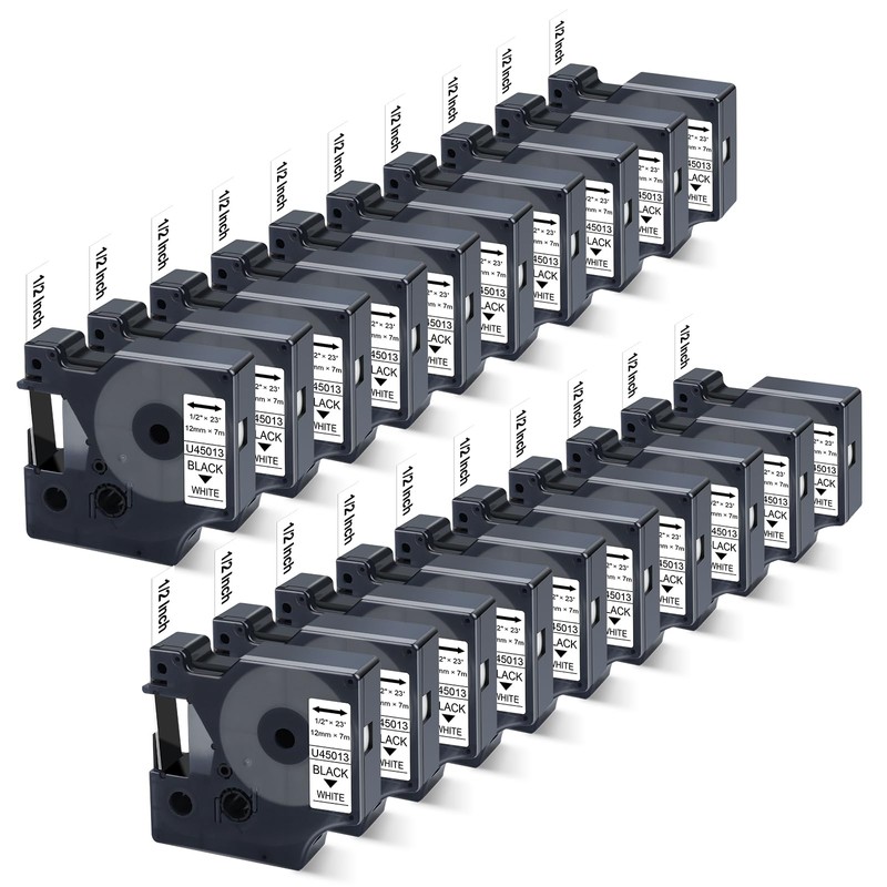 - Package Included: 20-Pack compatible for Dymo d1 45013 label maker tape. Black on White, 1/2" x 23’ (12 mm x 7 m) label tape