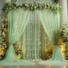 - 【Stunning Sheer Curtain with String Lights】Our green sheer backdrop curtain with lights is superb. This is so dreamy. Perfect for party, wedding, birthdays and many more. This is see through curtain but when you turn on the lights it looks so beautiful.