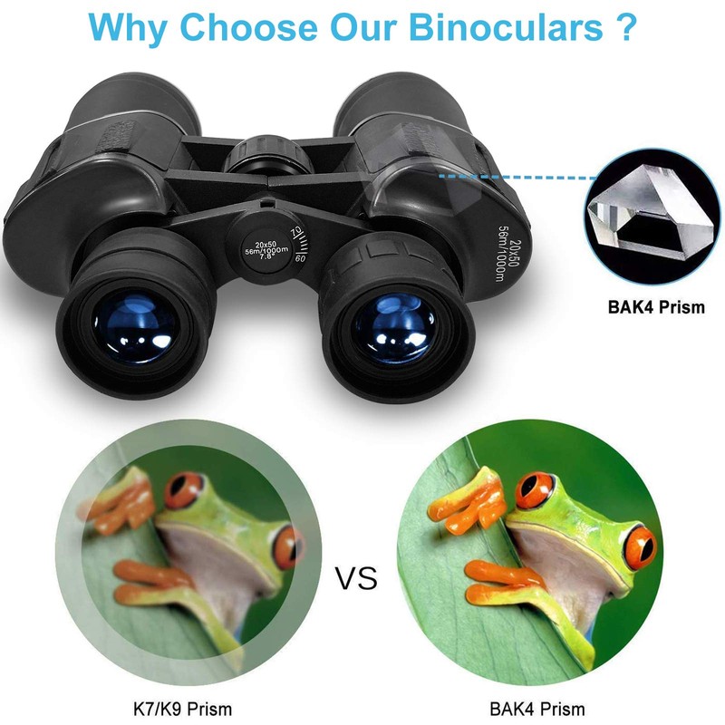 - 💯 【HD binoculars】 The BAK4 prism and the multi-layered FMC lens coating strengthen the light transmission of compact binoculars. Compared to Bak-7, the Bak-4 prism has a better refractive index.