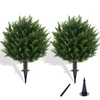 Chillchard 21" Artificial Cypress Topiary Outdoor Plants with Spike, 2 Pack Faux Cedar Bushes UV Resistant Fake Shrubs for Front Porch Décor