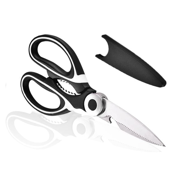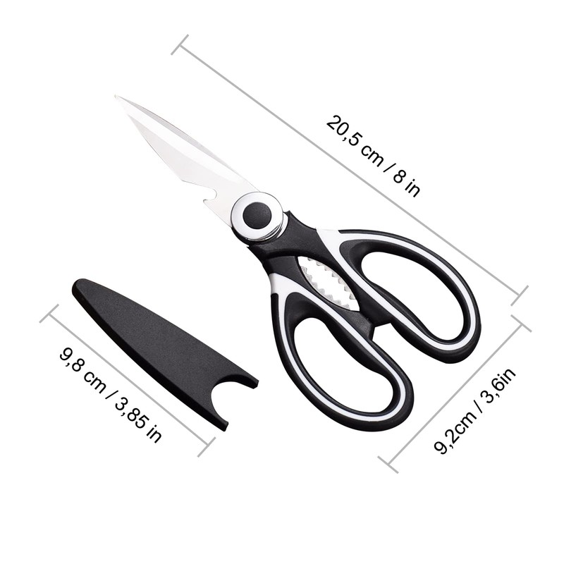 21 cm Kitchen Scissors, Kitchen Scissors with Sheath, for Meat, Vegetables, Fruits, Black and White