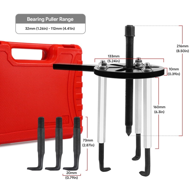 ZUXUSE 21 in 1 Bearing Puller, Bearing Puller Set with Curved Hook and 6 Sizes of Collets, Multifunctional Bearing Removal Tool, Inner Hole Three-Jaw Puller
