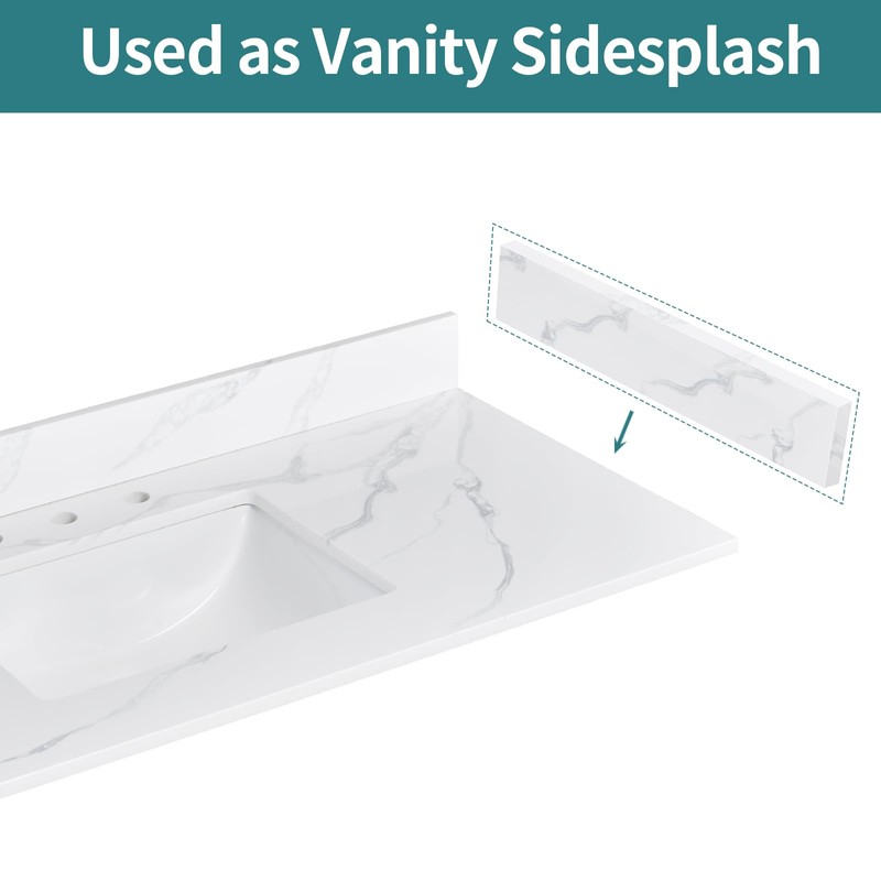 21 Inch Sidesplash in Calacatta Rocky, Quartz Stone Side Splash For Bathroom Vanity Top, Universal Size Bathroom Sink Sidesplash
