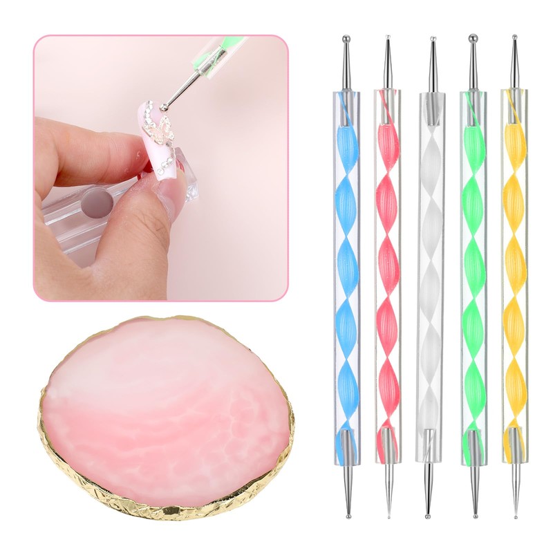 - Elegant Agate Style Palette: Measuring at just the right size, the nail art tool set exquisite stone-like palette not only mixes colors efficiently but also doubles as an aesthetic accessory for display and photography props, elevating your nail art experience.