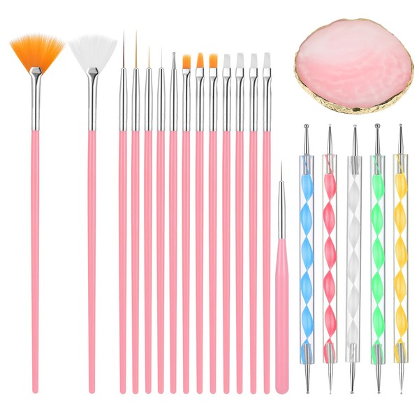 - Comprehensive Nail Tool Set: This nail art tools setset includes 15 varied nail art brushes, 5 double-ended dispensing tools, and a chic gold-edged resin palette, providing everything professional manicurists and DIY enthusiasts need for stunning nail designs.