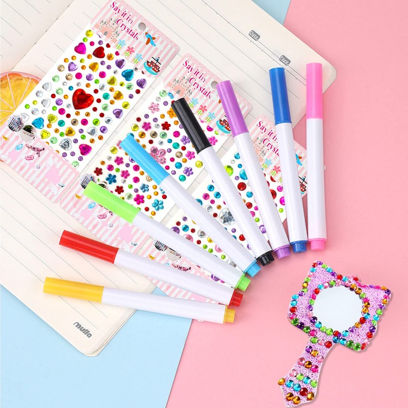 - Holzspiegel Bastelset Kindergeburtstag : 21 Stücke DIY Holzspiegel Handwerk für Kinder set,Das Set enthält 10 stück mini holz prinzessin spiege + 3 kristall diamant aufkleber + 8 aquarellstifte.