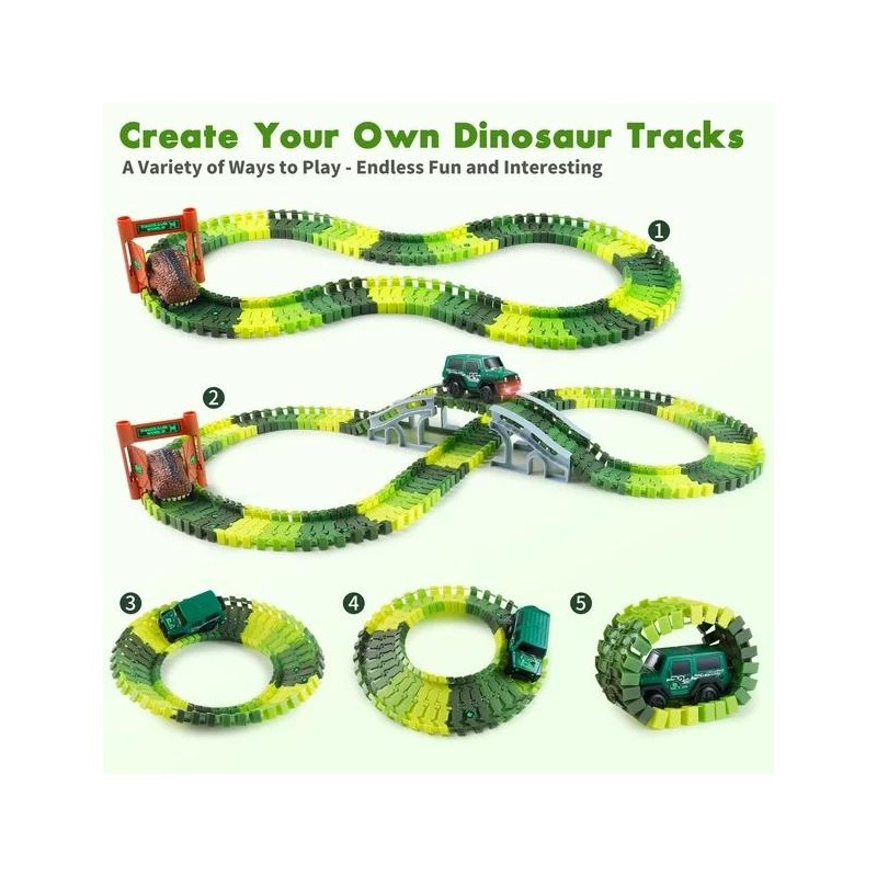 215 Pcs Glow-in-the-Dark Dinosaur Park Jurassic Race Track Train Playset Toys for Kids Car 215 PCS Road Toys for Boys,Girls,Best Toys Gift:_338PCS ConstructionCar Track Set