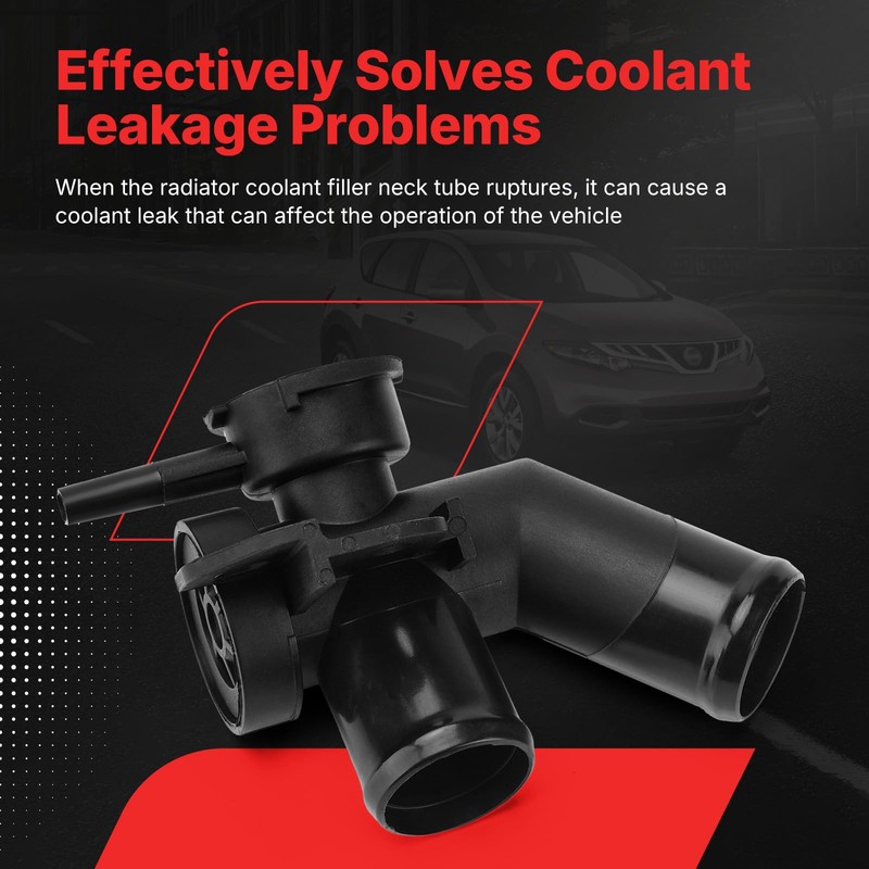 - Efficient cooling system ===== This filler neck plays a vital role in the vehicle's cooling system, allowing the proper filling and circulation of coolant to maintain optimum engine temperature. Reliably replace original parts that crack or fail due to heat, vibration or fatigue. Damage to the radiator coolant fill neck will prevent the coolant from reaching the radiator effectively, resulting in overheating of the engine and detrimental to vehicle life.