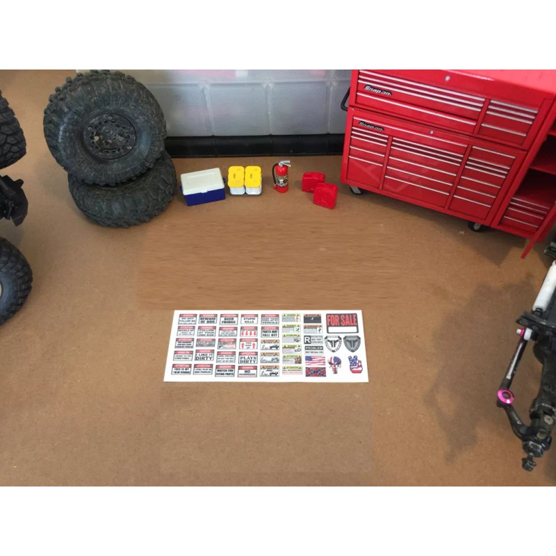 215_Decals RC 1/10 Scale Warning Decal Stickers Axial Crawler Graphic Garage 1.9 2.2 RC Set