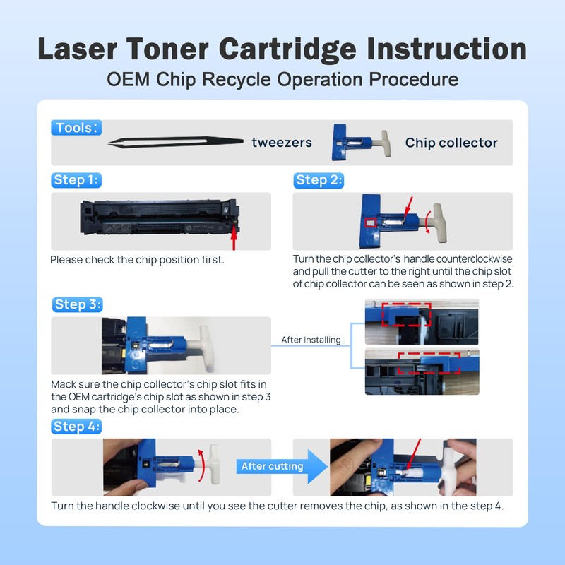 - Warm Tip: Compatible HP 218A toner cartridge 4 Pack do NOT come with chip, please remove the OEM HP 218A Toner Cartridges 4 Pack or HP 218X CHIP and install it into our new toner cartridge