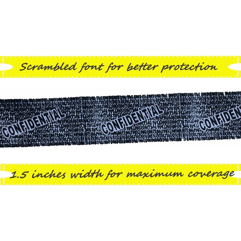 - EXCLUSIVE OPAQUE DESIGN. With our unique thick messy code with CONFIDENTIAL letters, one swipe is enough to obscure the text and cover your info. And the 1.5 inches wide roller provides maximum coverage in a quick, easy and clean way.