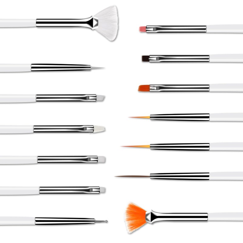 - You Will Get: This 21piece nail art brush kit includes 15 nails design brushes for nail art, 5 double-ended nail dotting tool set, and a resin nail art palette, providing all the essential tools for creative nail designs