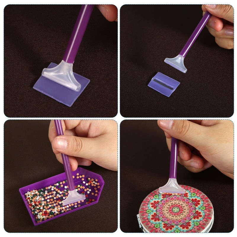 - Convenient to Use: You just need to pour the diamonds into the tray, shake gently to align the diamonds, then apply glue clay to the pen, then you can use the desired diamond brush on the dot pen to start the drilling process.