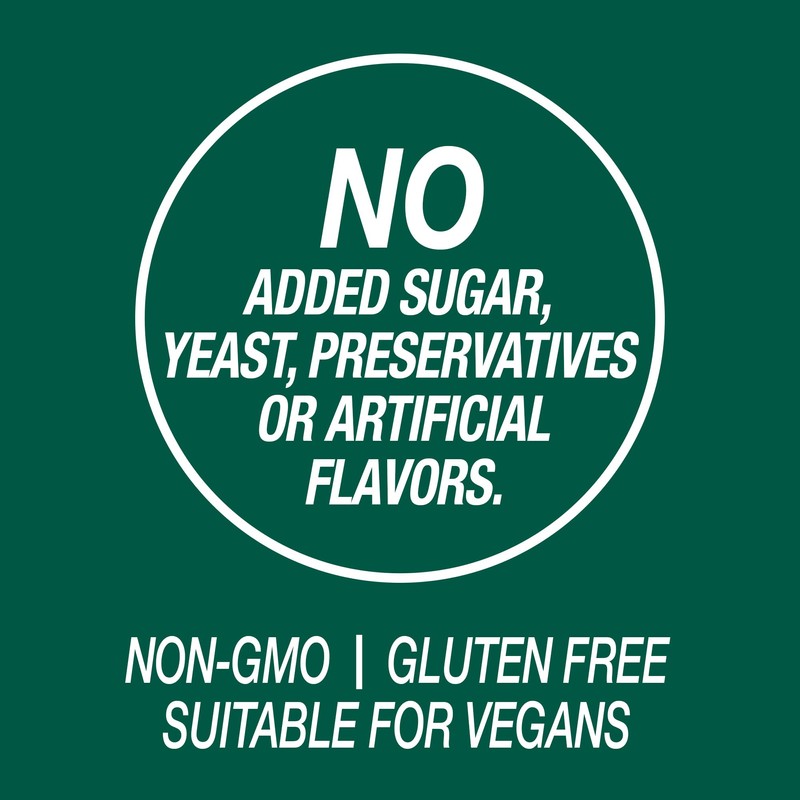 - NO ADDED: No added Sugar, Yeast, Preservatives or Artificial Flavors. Gluten Free. Suitable for Vegans. Non-GMO.